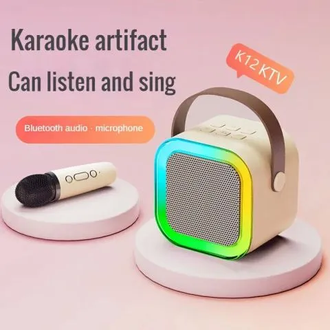 Mini Karaoke Machine Kids with Microphone Portable Bluetooth Speaker with RGB