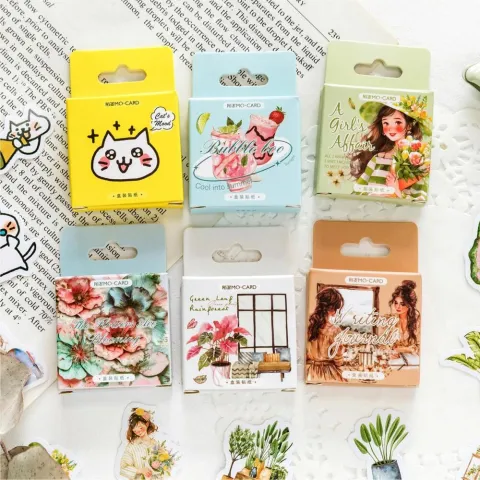 45Pcs Paper Stickers Girls Cat Plants Sticker Journal Card Seal Decorative Craft